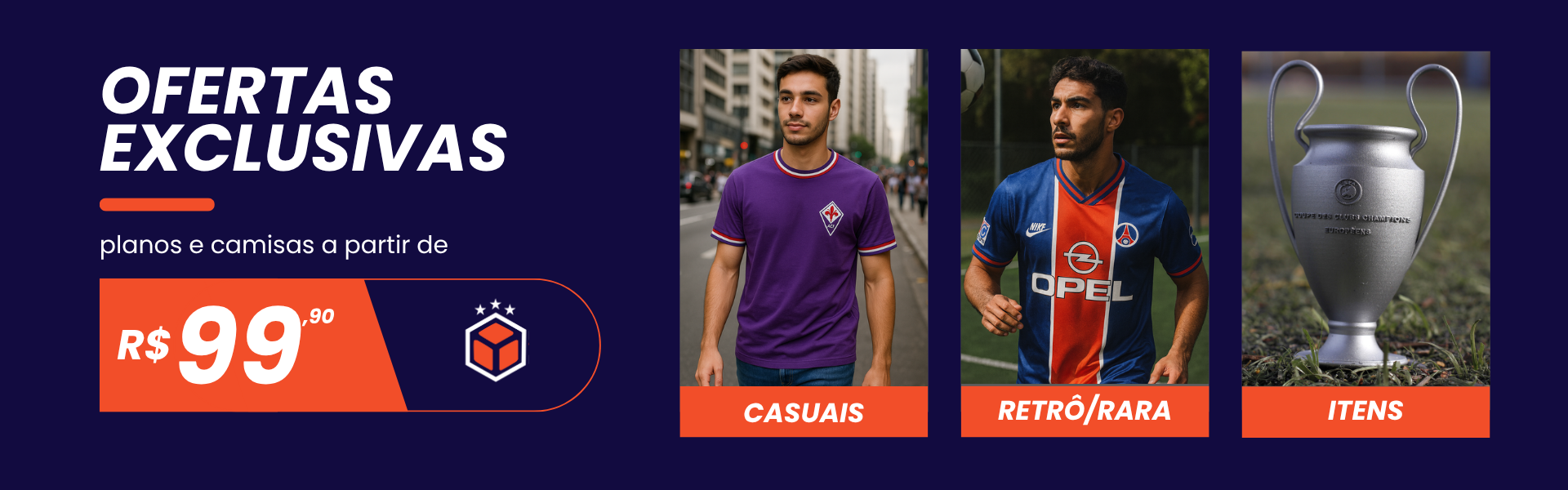 É hora de decidir como entrar em campo! Escolha o plano ̶t̶á̶t̶i̶c̶o̶ que mais combina com você. Temos planos com camisas raras e até casuais, produzidas por nós!