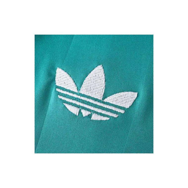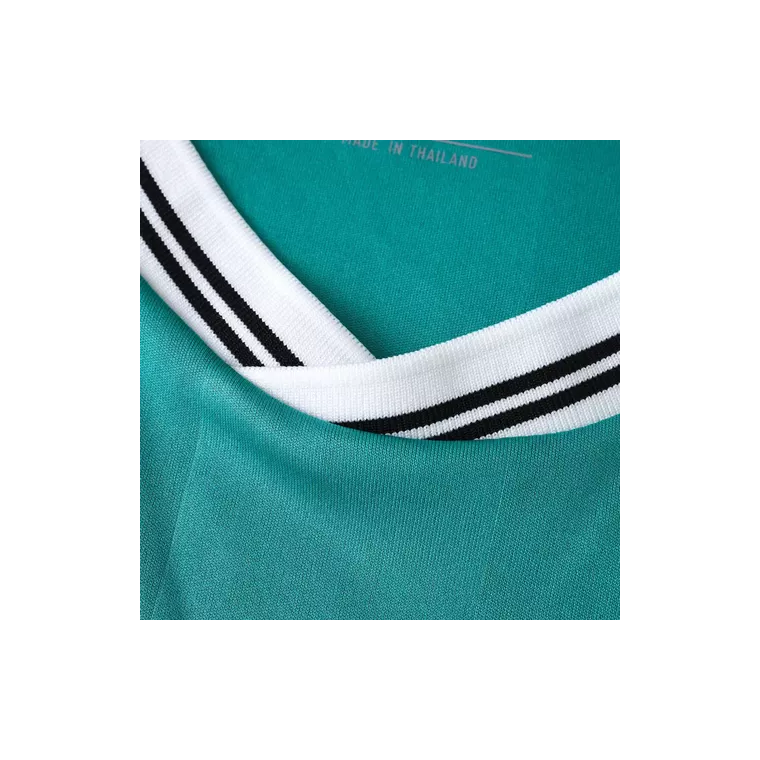 Inspirada em designs clássicos dos anos 80, o novo manto traz o tom verde-turquesa vibrante, que contrasta com os detalhes brancos nas mangas e gola retrô, criando um visual elegante e nostálgico ao mesmo tempo.