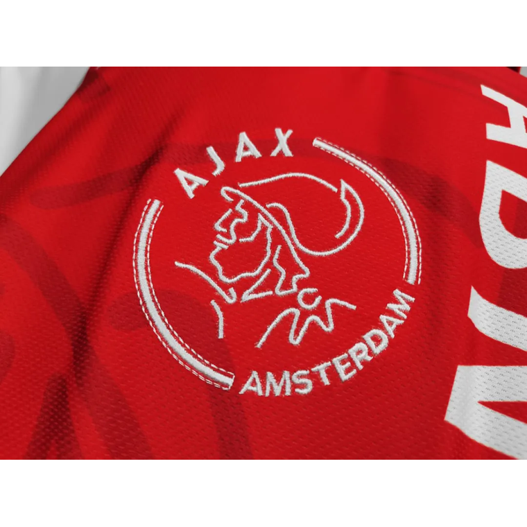A Camisa Retrô Ajax 1995 da Box to Box revive aquele manto lendário, com o tradicional vermelho centralizado sobre o branco puro, gola retrô e escudo bordado com fidelidade histórica.