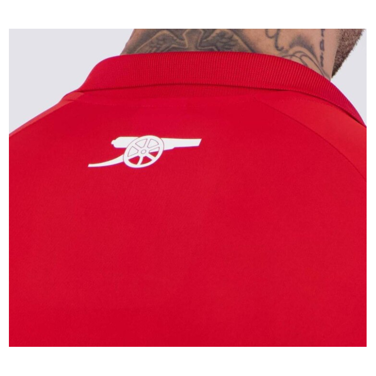O escudo do Arsenal aparece em branco, aplicado de forma limpa e elegante, reforçando o estilo minimalista da peça.