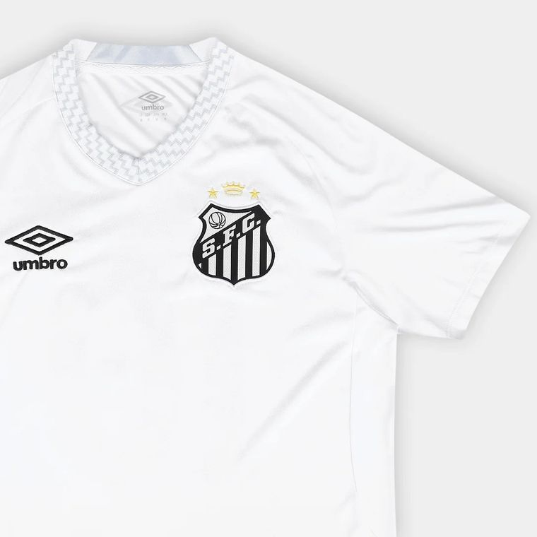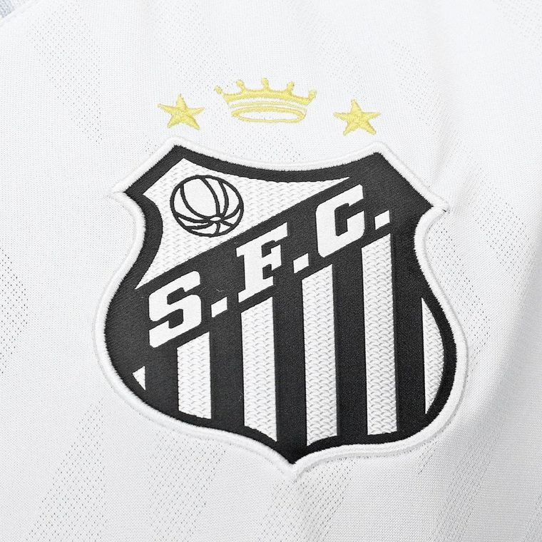 Com design clássico, elegante e fiel à tradição santista, o uniforme traz o branco limpo icônico, detalhes pretos minimalistas e o escudo bordado em alto relevo.